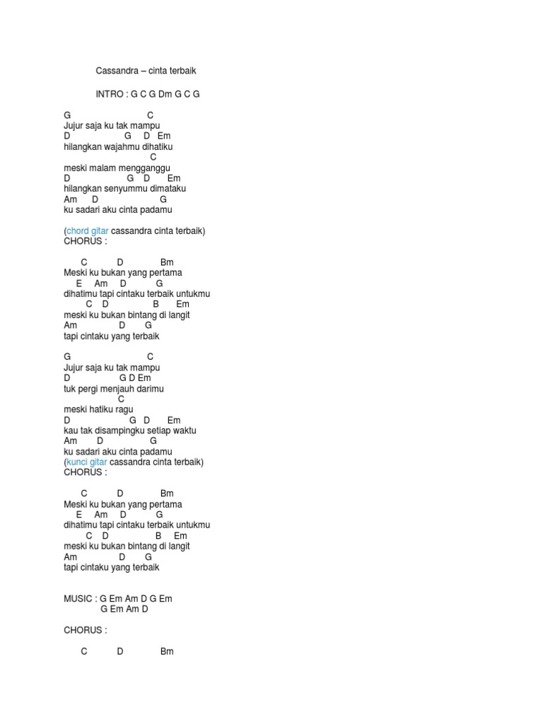 Chord Cinta Terbaik By Cassandra Chordlicious