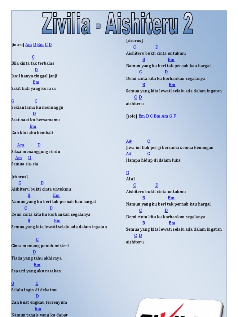 Chord Zivilia Aishiteru 2 Chord Gitar Indonesia Kumpulan Kunci