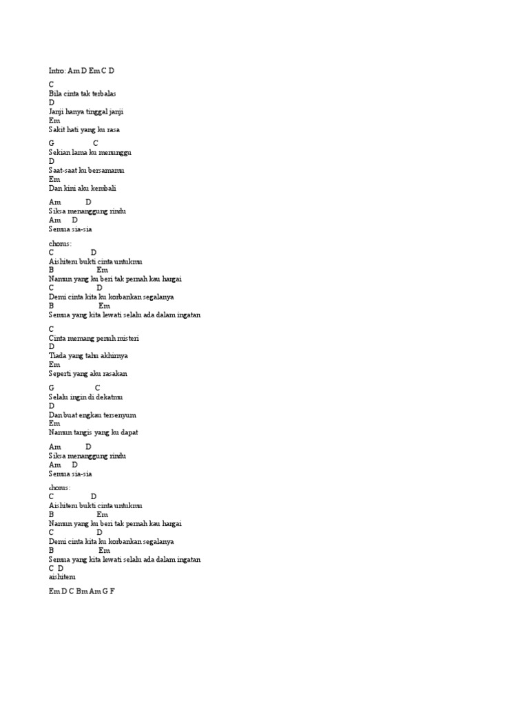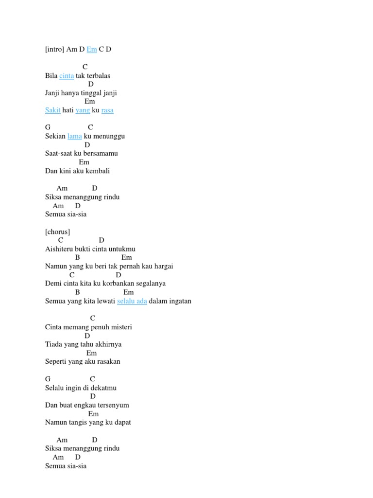 Chord Gitar Dan Lirik Lagu Zivilia Aishiteru 2 Abadikini Com