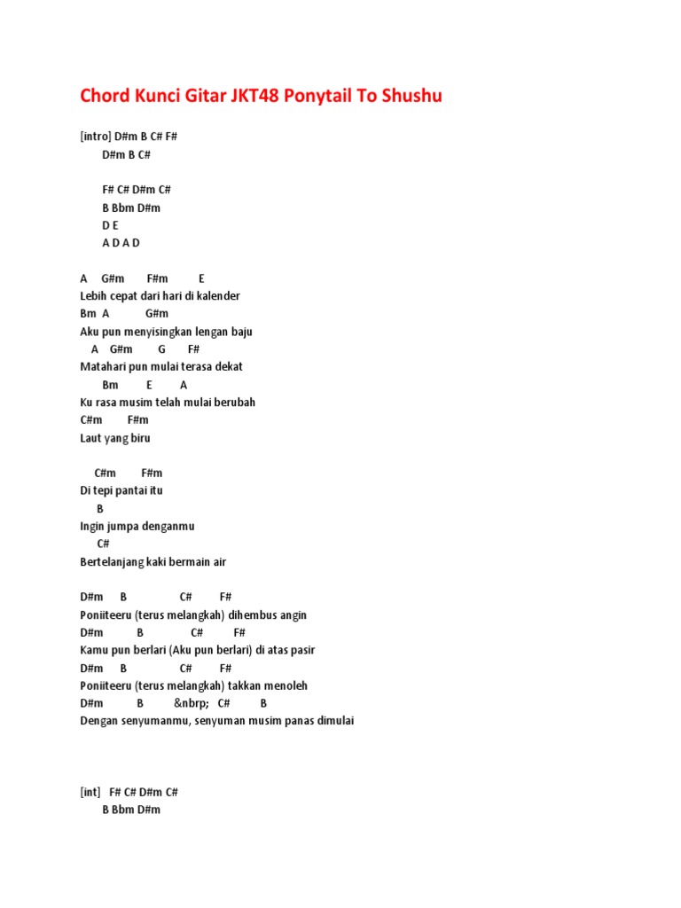 Chord Kunci Gitar Jkt48 Ponytail To Shushu