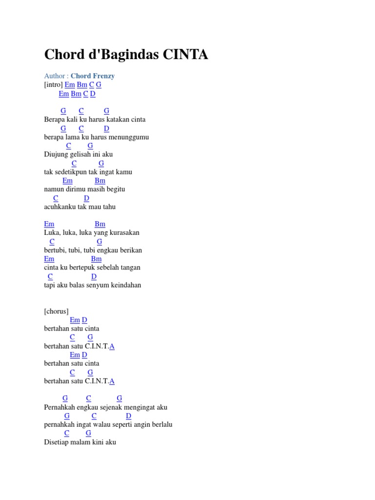 Chord Dan Lirik D Bagindas C I N T A لم يسبق له مثيل الصور Tier3 Xyz