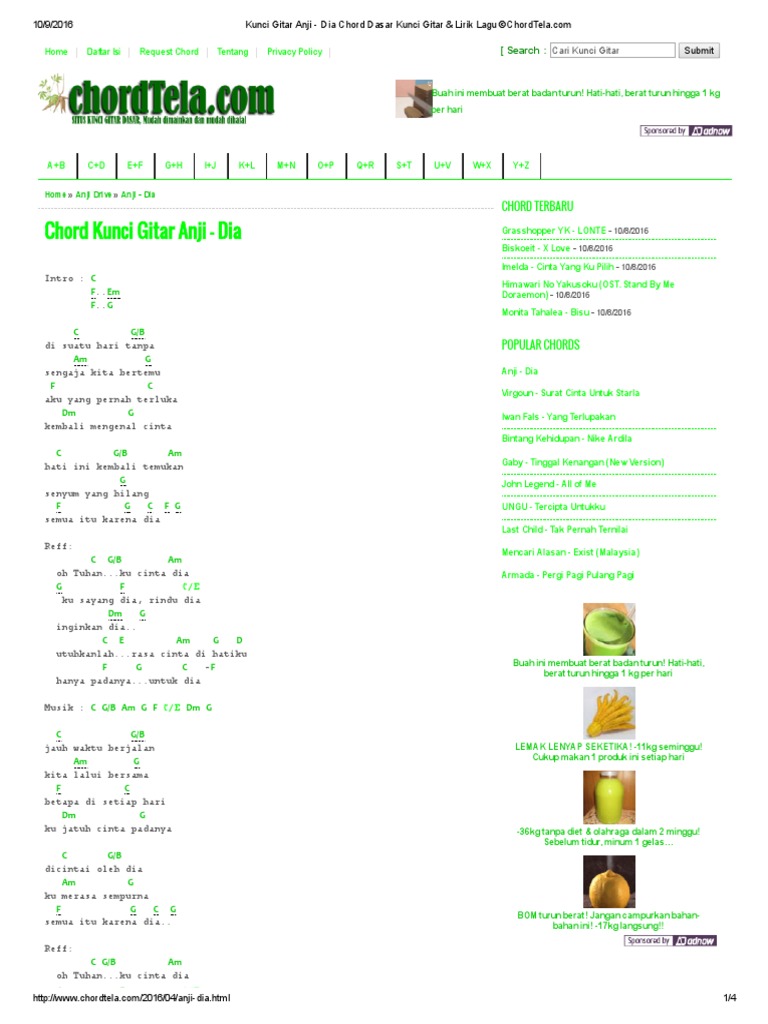 Chord Anji Dia Gitar Lagu Galau Indonesia Mudah Nada Dasar
