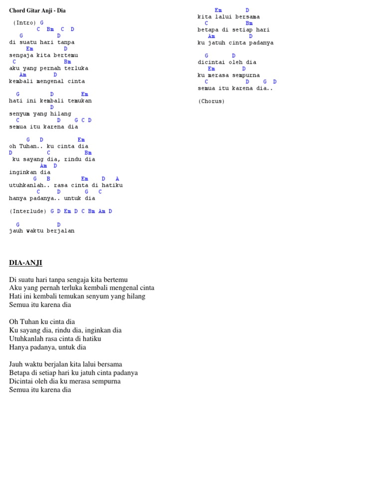 Chord Anji Dia Chord Gitar Indonesia Kumpulan Kunci Gitar