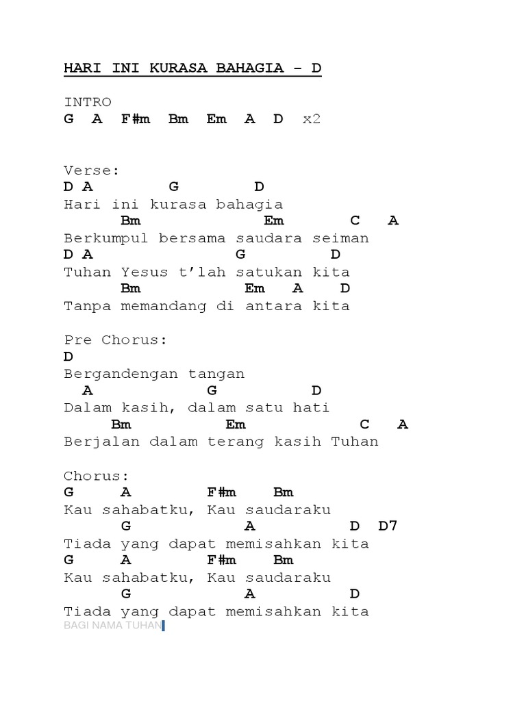 Hari Ini Kurasa Bahagia Chords Lyrics Psalmnote