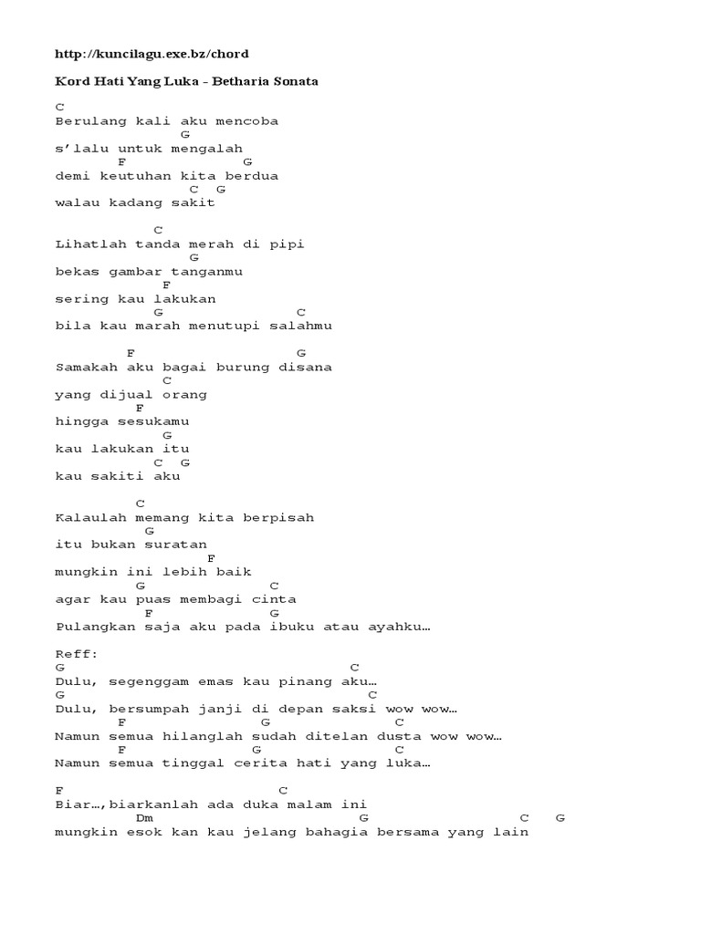 Chord Hati Yang Luka Betharia Sonata Kunci Gitar Dasar Paling