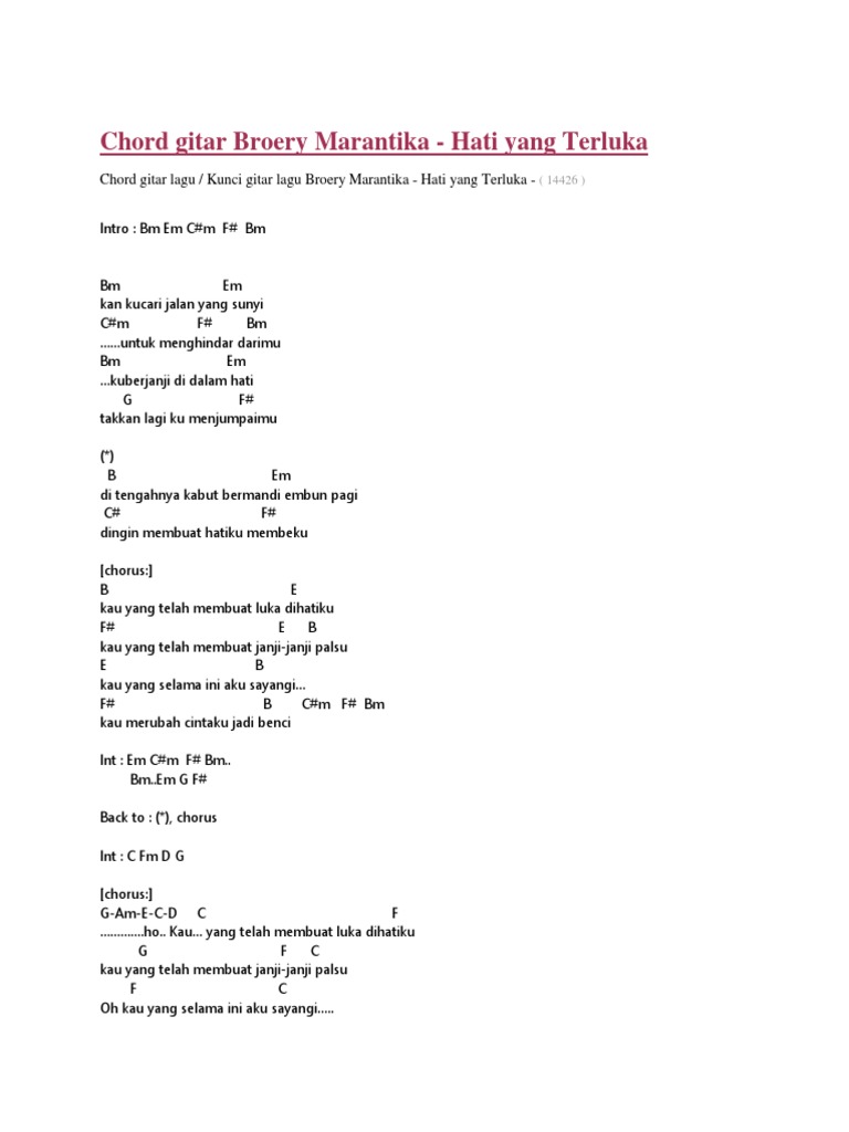 Lirik Dan Kunci Gitar Hati Yang Luka