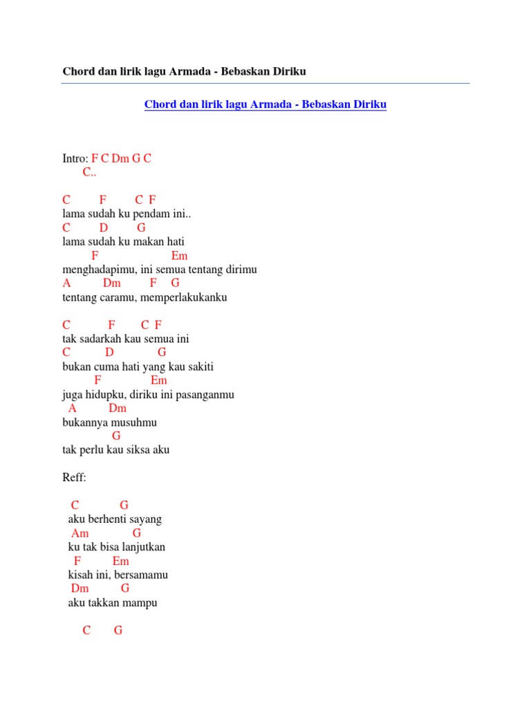 Chord Dan Lirik Lagu Armada Bebaskan Diriku