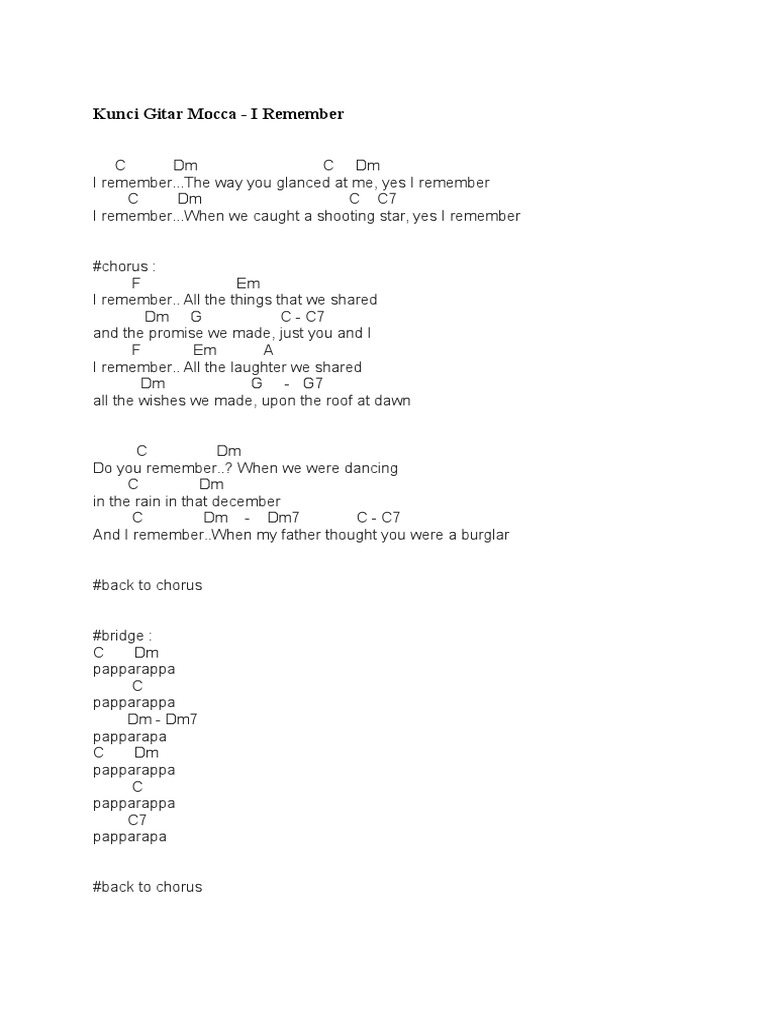 Chord Kunci Gitar Dan Lirik Lagu I Remember Mocca I Remember