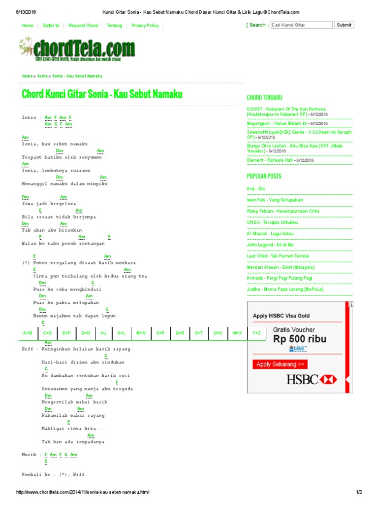 Kunci Gitar Sonia Kau Sebut Namaku Chord Dasar Kunci Gitar