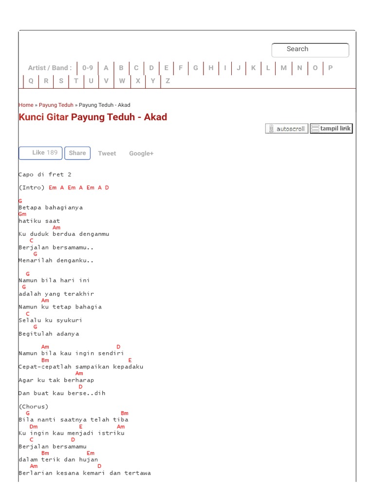 Kunci Gitar Payung Teduh Akad Chord Dasar Mudah