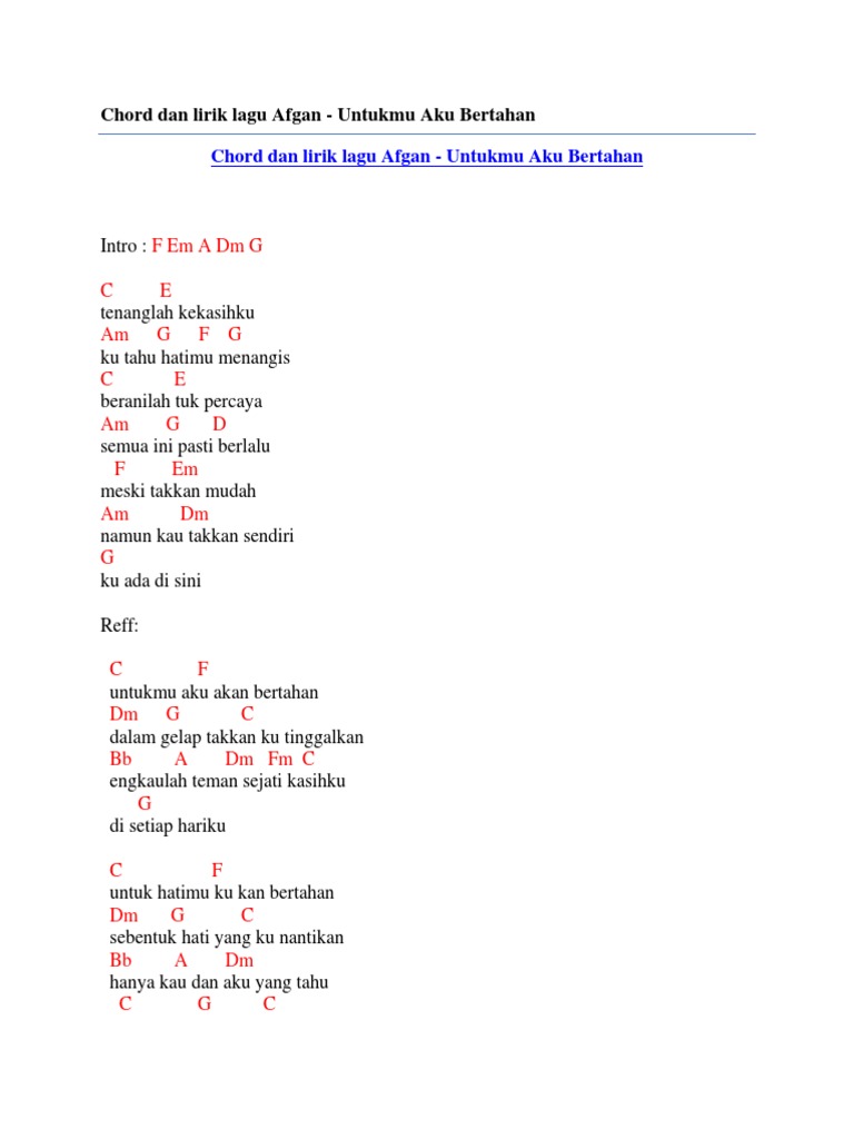 Chord Dan Lirik Lagu Afgan Untukmu Aku Bertahan