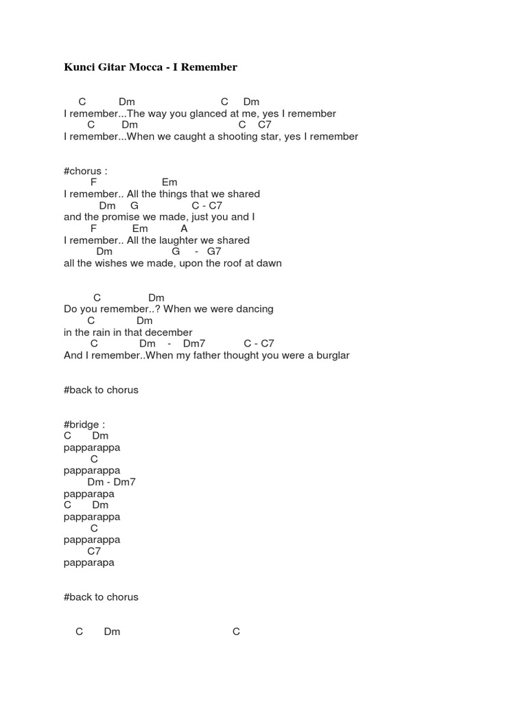 I remember chords by mocca. Chord i remember c dm c dm i remember the way you glanced at me yes i remember c dm c c7 i remember when we caught a shooting star. Chord i remember c dm c dm i remember the way you glanced at me yes i remember c dm c c7 i remember when we caught a shooting star yes i remember chorus.