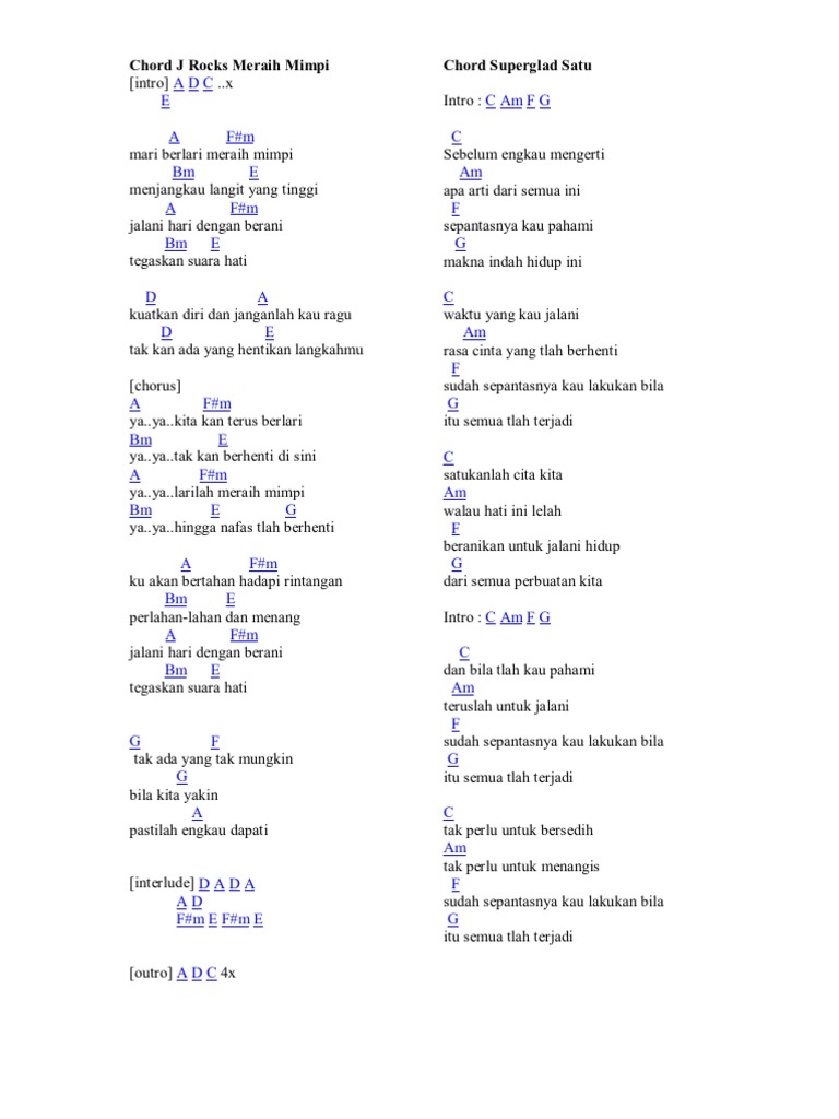 Chord J Rocks Meraih Mimpi Chord Gitar Indonesia Kumpulan