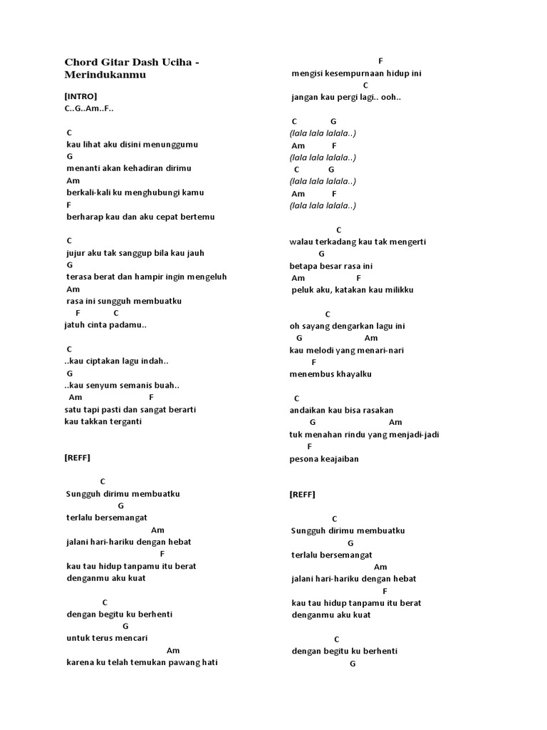 Chord Merindukanmu Full Version By Dash Uciha Chordlicious