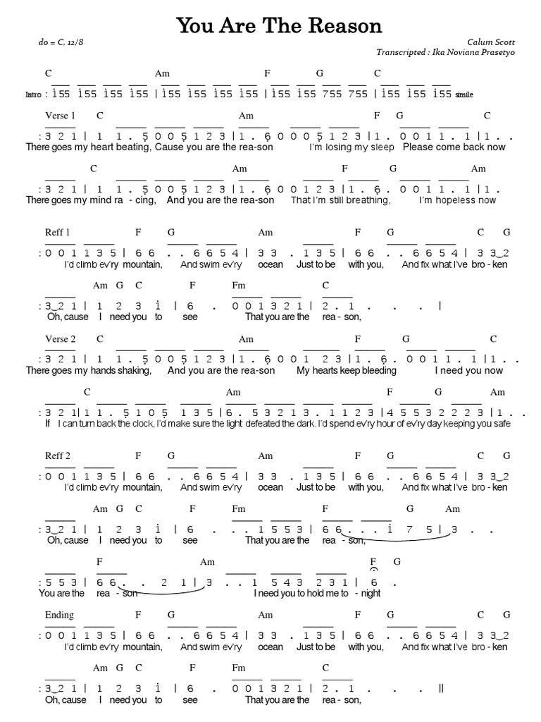 You Are The Reason Calum Scott Lyrics And Chords Ukulele