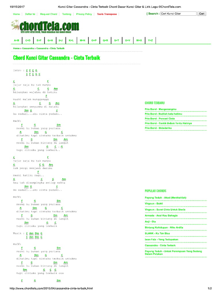 Kunci Gitar Cassandra Cinta Terbaik C Unci Gitar Lirik Lagu