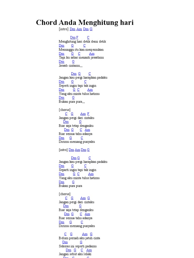 Kunci Gitar Anda Menghitung Hari Chord Dan Lirik