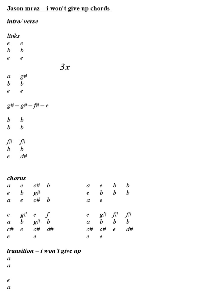Chord I Won T Give Up Jason Mraz Chordsbox